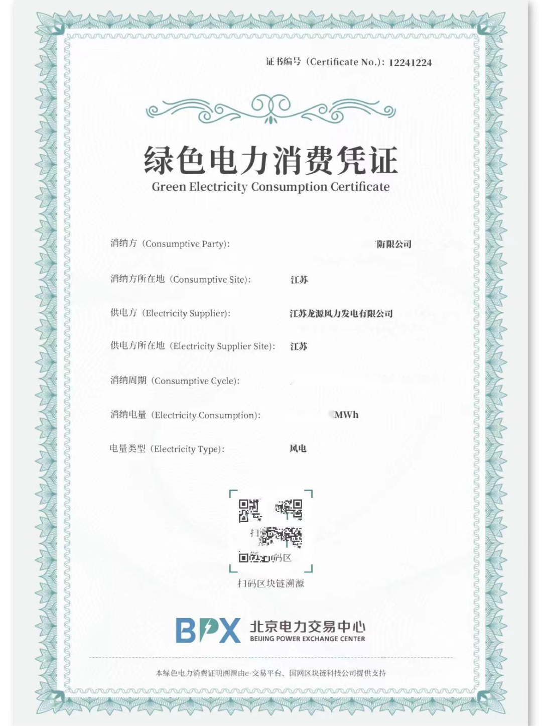 绿色电力证书作为可再生能源电力消费凭证,是企业消费绿色电力、支持绿色电力发展的标志性证明。此次常宝与正辉太阳能电力有限公司、江苏龙源风力发电有限公司三方达成400千万时/月的绿电交易合作,相当于每月减排二氧化碳2281.2吨。