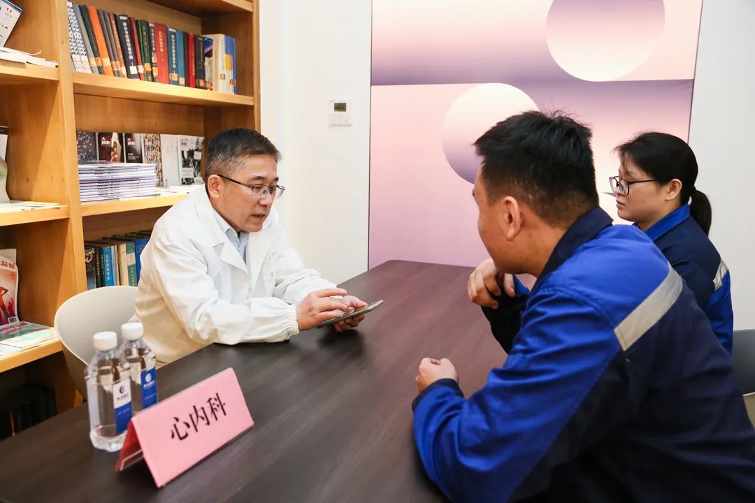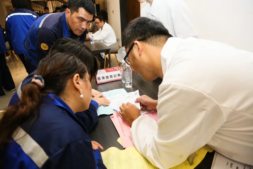 随后义诊环节在展示馆一楼有序展开。各科主任医师纷纷就位,热情地接待每一位前来问询的员工。他们耐心细致地为员工解读病历,针对大家日常关心的健康问题答疑解惑,对于大家带来的体检报告,更是进行了专业分析,让大家了解自己的身体状况以及需要注意的事项。除此之外,医生们还主动解读医保政策、统筹政策,让大家对关乎自身切身利益的医保政策有了更深层次的认识。
