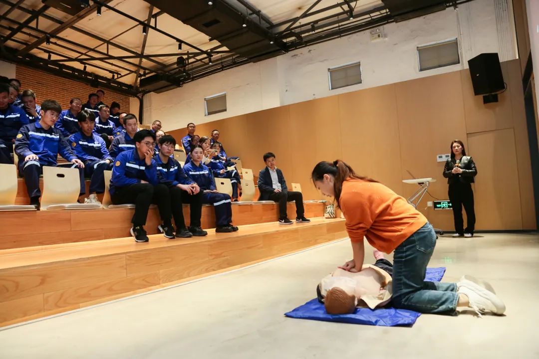 活动现场专家云集,公司特别邀请了常州二院心内科、骨科、神经内科、消化科、创伤外科、烧伤科、体检科等多个科室的主任医师。活动伊始,专家在展示馆二楼作实用性知识培训,聚焦于烧伤烫伤以及心肺复苏急救知识这两个方面,通过生动的讲解、直观的示范,向员工传授紧急情况的正确应急处理,以及在危急时刻实施心肺复苏的关键步骤和要点。