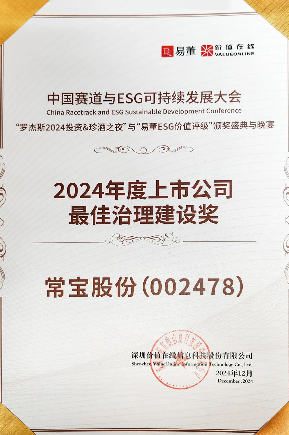 2024年12月,在易董和价值在线ESG价值评级颁奖盛典上,公司获评2024年度上市公司最佳治理建设奖。