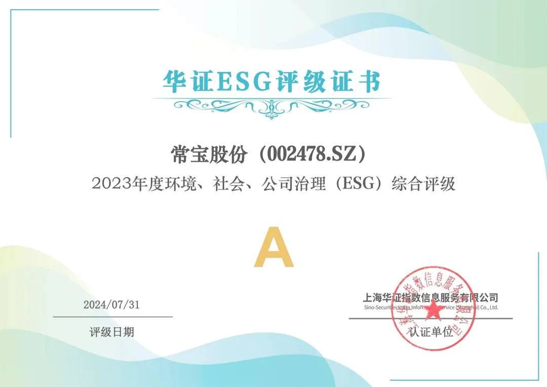 2024年7月,华证ESG评级基于公司2024年度ESG治理成效,上调公司评级至A级,总体评级达到行业领先水平。
