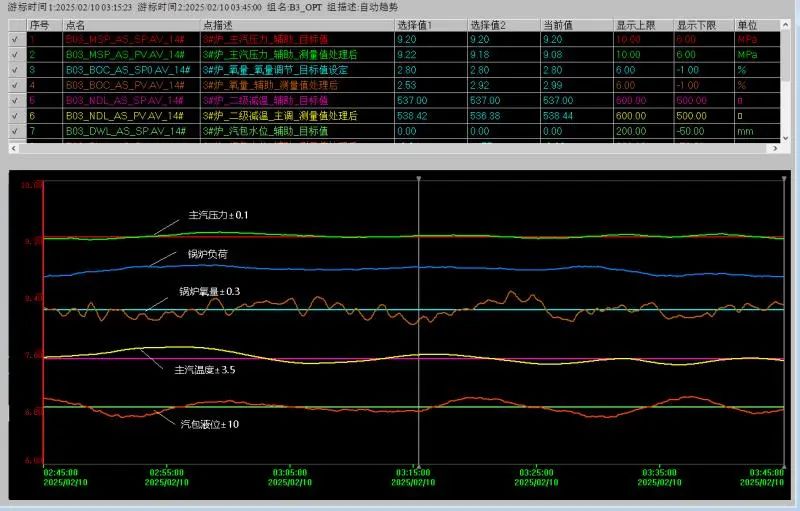 构建多变量耦合模型,实时采集炉膛负压、一次风量等12项参数,结合前馈预测算法,使负荷响应滞后时间从12秒缩短至4秒,在50%-110%负荷波动范围内实现风煤配比动态优化;使主汽压力波动明显降低,氧量波动范围缩窄至±0.2%,从而实现燃烧过程的最优化。