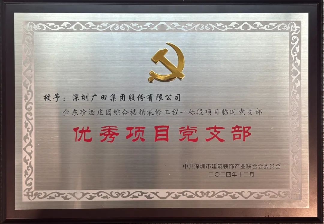 ▲广田集团金东珍酒庄园综合楼项目临时党支部荣获"2024年度优秀项目临时党支部"称号