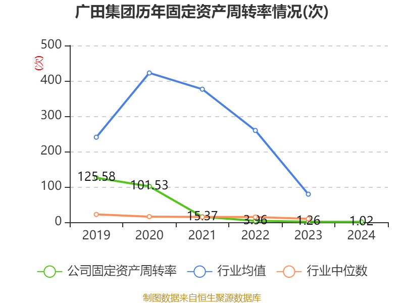 数据显示,2024年广田集团加权平均净资产收益率为-29.7%。公司2024年投入资本回报率为-9.16%,较上年同期下降148.96个百分点。