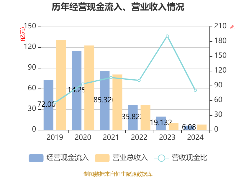 截至2024年,广田集团经营活动现金流净额为-1.05亿元,同比减少611.47万元;筹资活动现金流净额4.89亿元,同比增加3.61亿元;投资活动现金流净额-5257.48万元,上年同期为194.94万元。