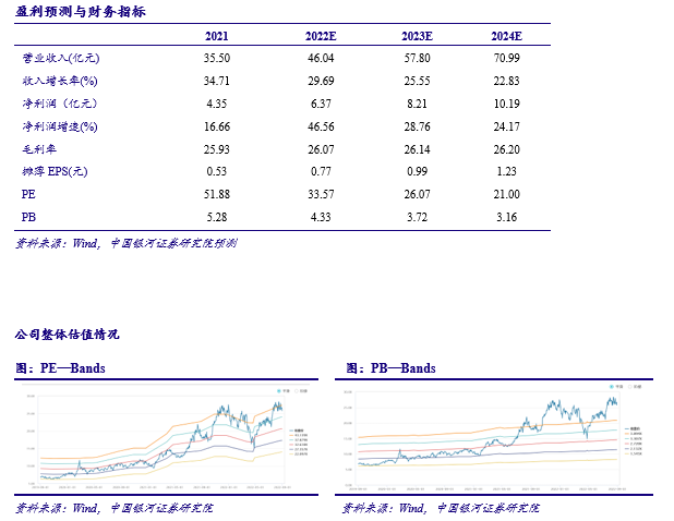 公司受益于新能源行业的高景气度,铝电解电容、薄膜电容、电极箔等持续快速增长。我们预计公司2022-2024年EPS为0.77/0.99/ 1.23元,对应2022-2024年PE分别为33.57X/26.07X/21X。首次评级,给予“推荐”评级。