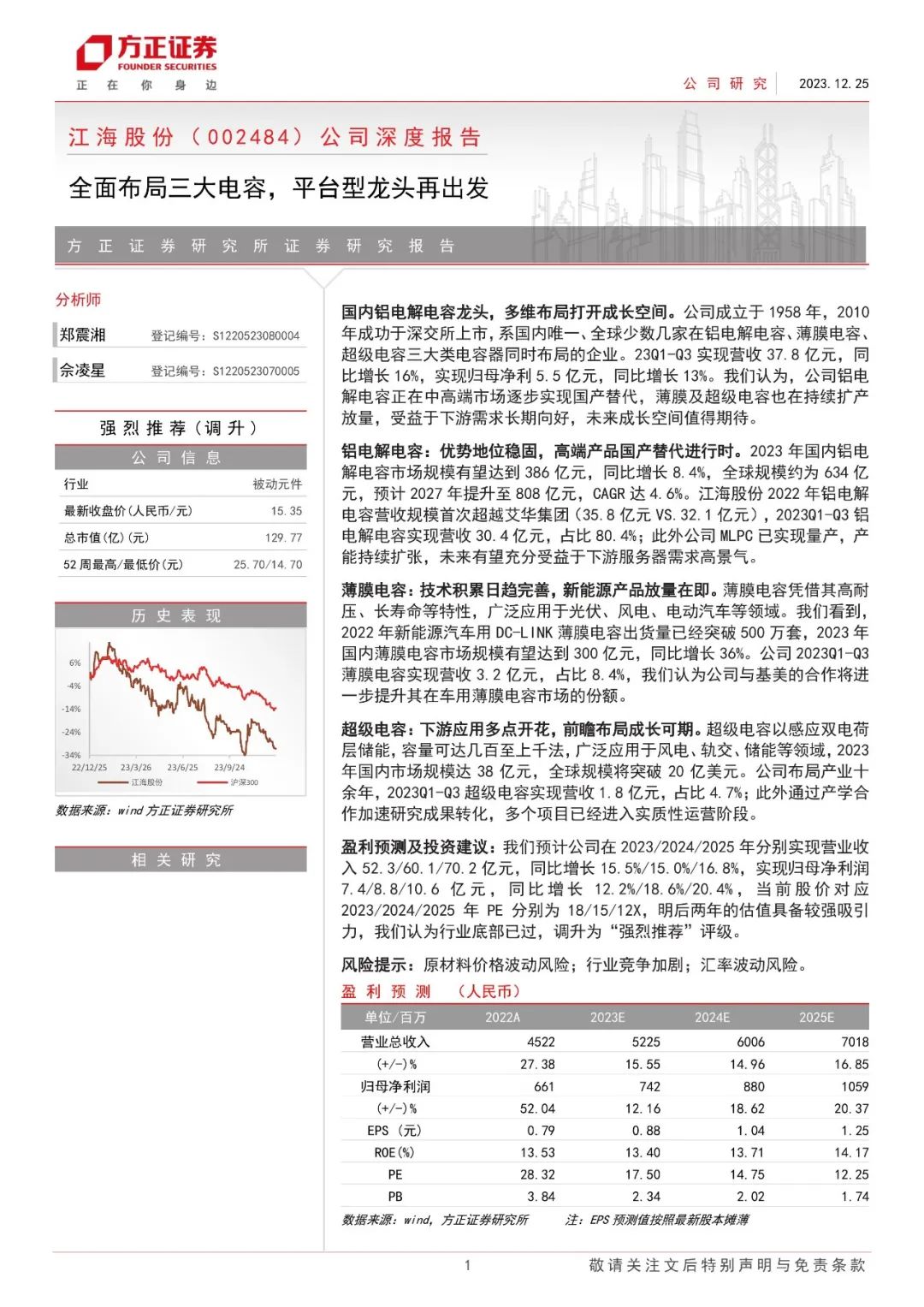 以上为报告部分内容,完整报告请查看《江海股份(002484):全面布局三大电容,平台型龙头再出发》。