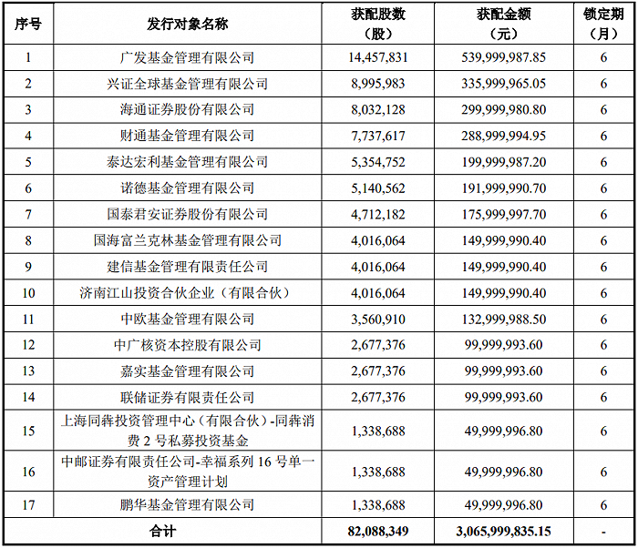 大金重工12月19日公告,定增募资已完成,募资总额30.66亿元,发行数量为8208.83万股,增发价格为37.35元/股。广发基金获配5.40亿元,兴证全球基金获配3.36亿元。
