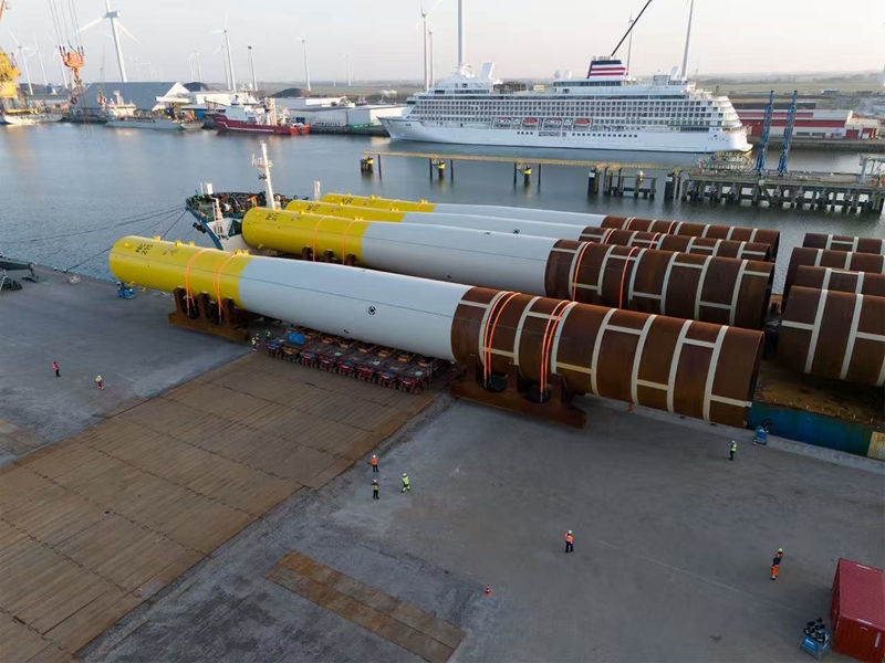 大金重工发往欧洲的超大型海上风电单桩产品(图片来源:大金重工)