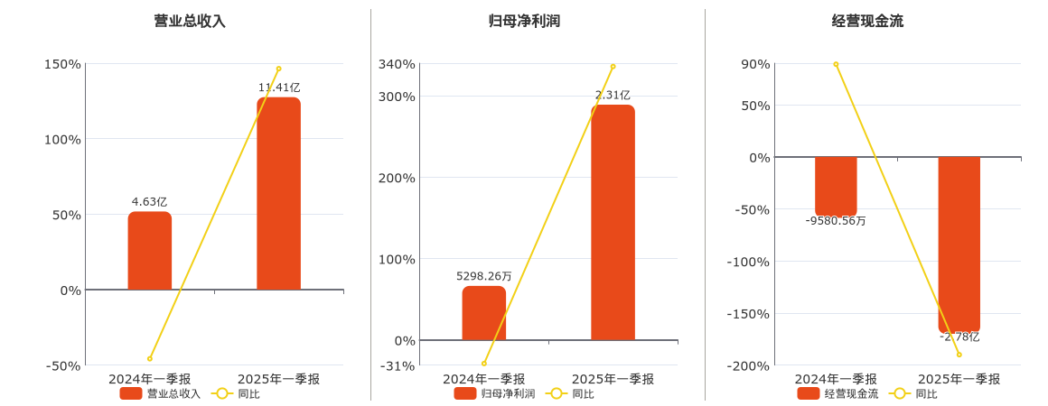 公司营业总收入为11.41亿元。归母净利润为2.31亿元。经营活动现金净流入为-2.78亿元,较去年同报告期经营活动现金净流入减少1.82亿元。