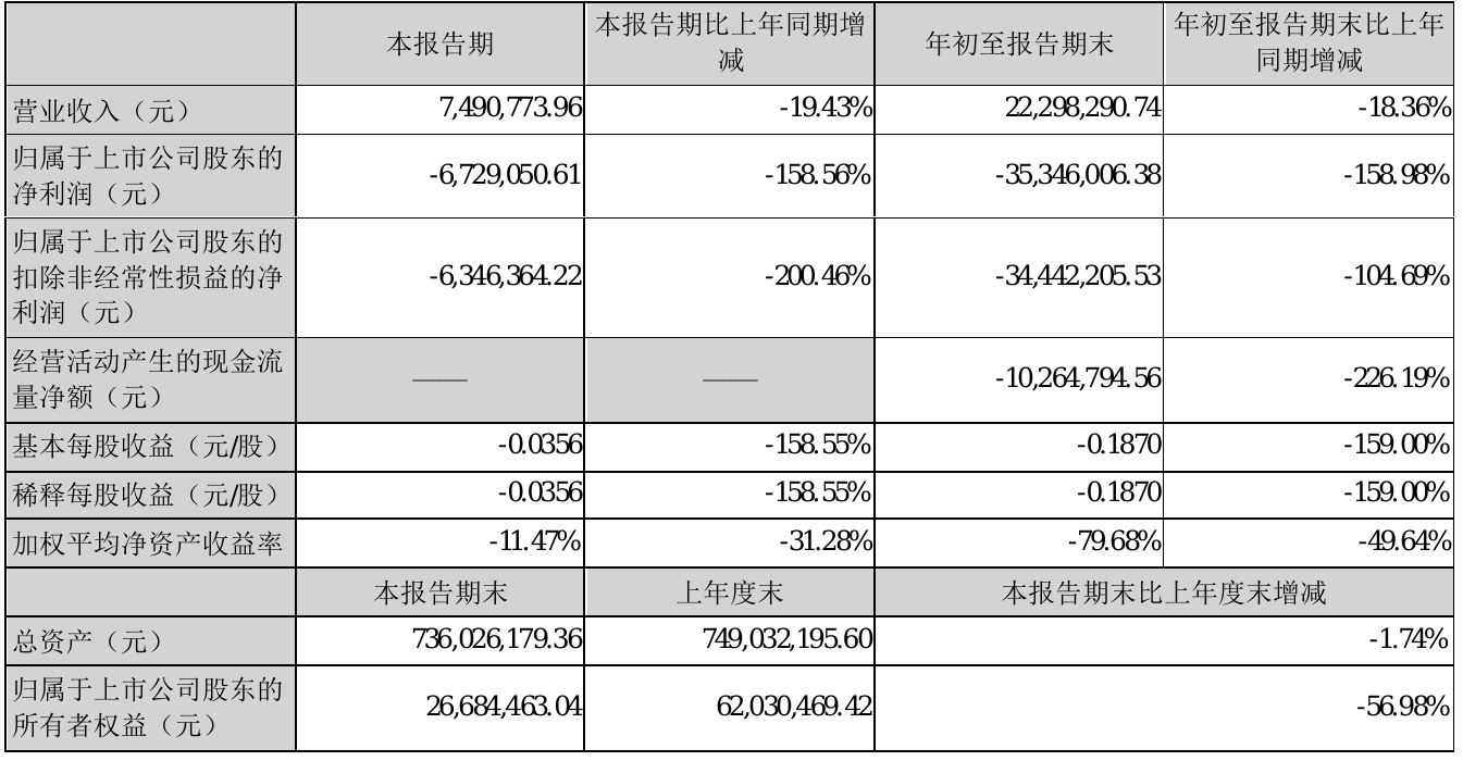 挖贝网10月29日,*ST科林(002499)近日发布2021年前三季度报告,报告期内营业收入22,298,290.74元,同比减少18.36%;亏损35,346,006.38元。