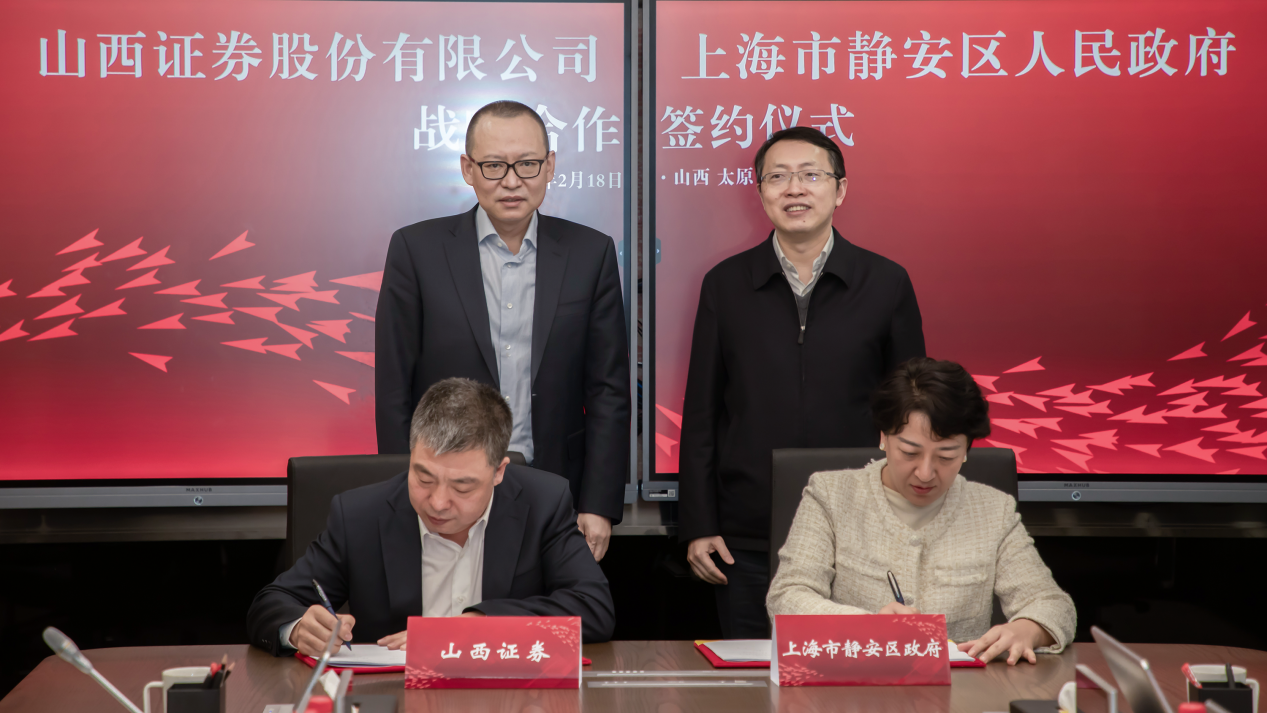 2月18日上午,山西证券股份有限公司与上海市静安区人民政府在山西国贸中心签署战略合作协议,并进行了深入座谈交流。中共上海市静安区委副书记、区长王华,山西证券党委书记、董事长侯巍出席并见证了签约仪式;上海市静安区金融办主任李立文,山西证券执委、山证资管董事长乔俊峰代表双方签署战略合作协议。