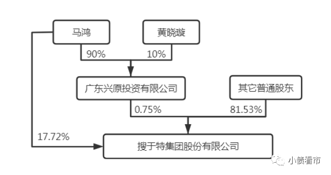 从股权结构看,马鸿直接持有搜于特17.72%的股份,其一致行动人广东兴原投资有限公司持股0.75%,公司实际控制人为马鸿。