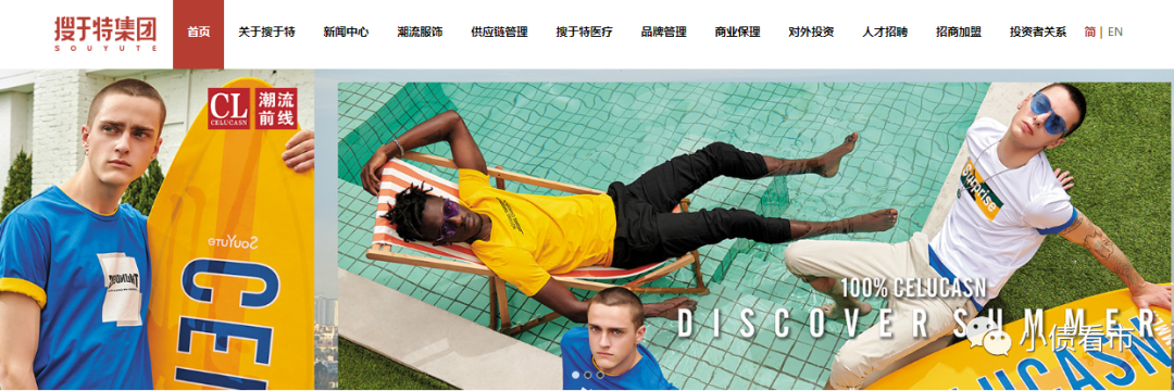 据官网介绍,搜于特前身为东莞市搜于特服饰有限公司,2005年12月创立于中国改革开放的前沿城市广东省东莞市,从运营休闲服饰品牌“潮流前线”起步,一直稳步快速成长。