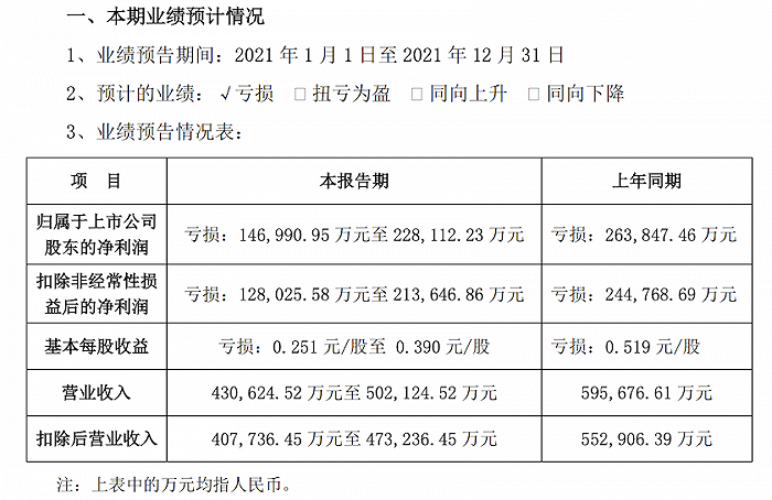 协鑫集成发布的2021年度业绩预告显示,公司预计2021年亏损14.7亿元至22.8亿元,基本每股收益为-0.519元/股,2020年该公司亏损幅度更大,为-26.4亿元。