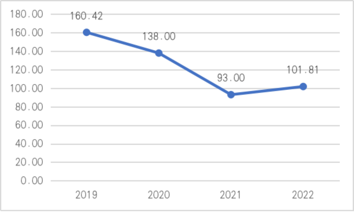 ——总资产规模刚刚止滑。从图1可以看到,2019-2021年协鑫集成的总资产不断减少,2021年资产规模以32.61%的降速收缩至93.00亿元。2022年虽然扭转了资产规模逐年下降的趋势,增长至101.81亿元,但增速仅为9.48%,与2019年的资产规模相比仍有较大差距。公司应紧抓产业链扩张机遇期,联合优势企业,发挥自身产业、技术、品牌优势,适时推动海外产能布局,规避贸易壁垒,形成全球区域竞争优势,并持续开拓海外市场渠道布局,实现规模增长。