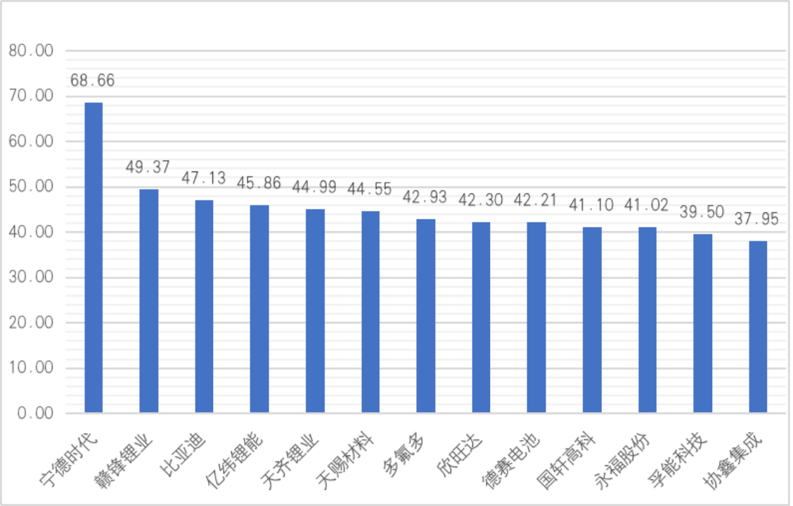 图5 “电池产业链”领域企业品牌优势值