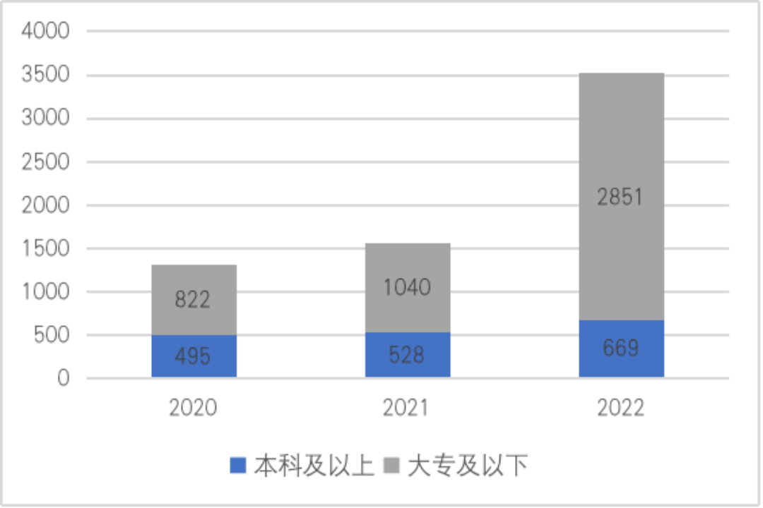 ——员工数量逐年增长。从图4可以看出,近三年协鑫集成母公司和主要子公司的员工数量在不断攀升,从2020年的1317人增至2022年的3520人,于2022年实现翻倍增长。伴随公司业务量的增长,协鑫集成不断增加员工数量以满足经营需要。但在员工数量增长较快的同时,本科及以上学历的员工在全体员工中的占比由2020年的37.59%下降至2022年的23.47%,因此公司员工整体受教育水平仍有优化空间。
