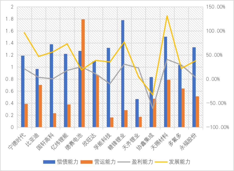 图7 2021年“电池产业链”领域企业偿债、营运、盈利、发展能力