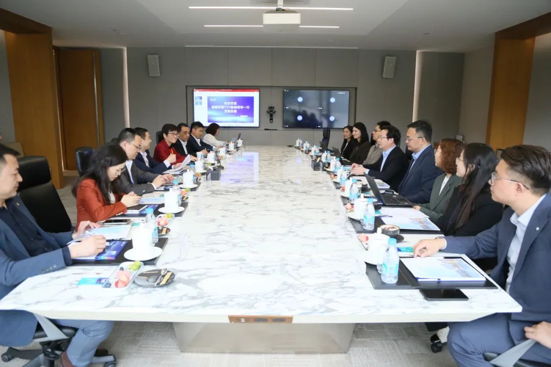 本次会议汇聚了各方高层力量,协鑫集成首席运营官郑任与协鑫科技副总裁宋赟波带领核心领导团队与德国莱茵TüV集团全球电力电子产品服务副总裁兼大中华区太阳能与商业产品服务总经理李卫春及其专业团队、蚂蚁数科战略客户部工业能源副总经理胡洪源、产品专家魏孟宇共同进行深入对话。