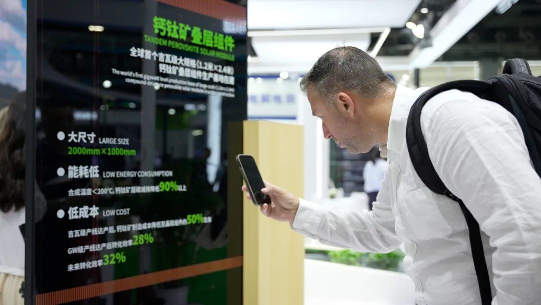 同样协鑫钙钛矿展区同样吸引了众多关注。据中国计量院最新数据显示:上半年,协鑫大面积钙钛矿单结组件取得 19.04%@2m2;大面积钙钛矿晶硅叠层组件取得 26.36%@1.71m2,并于近日,再次刷新全球大面积钙钛矿叠层组件转化效率记录。达到 27.34%@2050cm2。且钙钛矿1m*2m单结组件已通过德国莱茵TüV的严苛测试,荣获IEC 61215和IEC 61730安全及可靠性认证。这不仅标志着协鑫钙钛矿技术在“高效率、大尺寸、高稳定性”三方面均位居世界顶尖水平,更预示了协鑫钙钛矿将引领行业迈入“三维”竞争新时代。