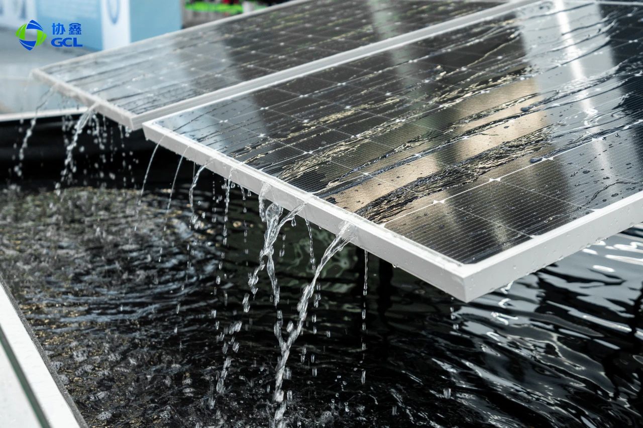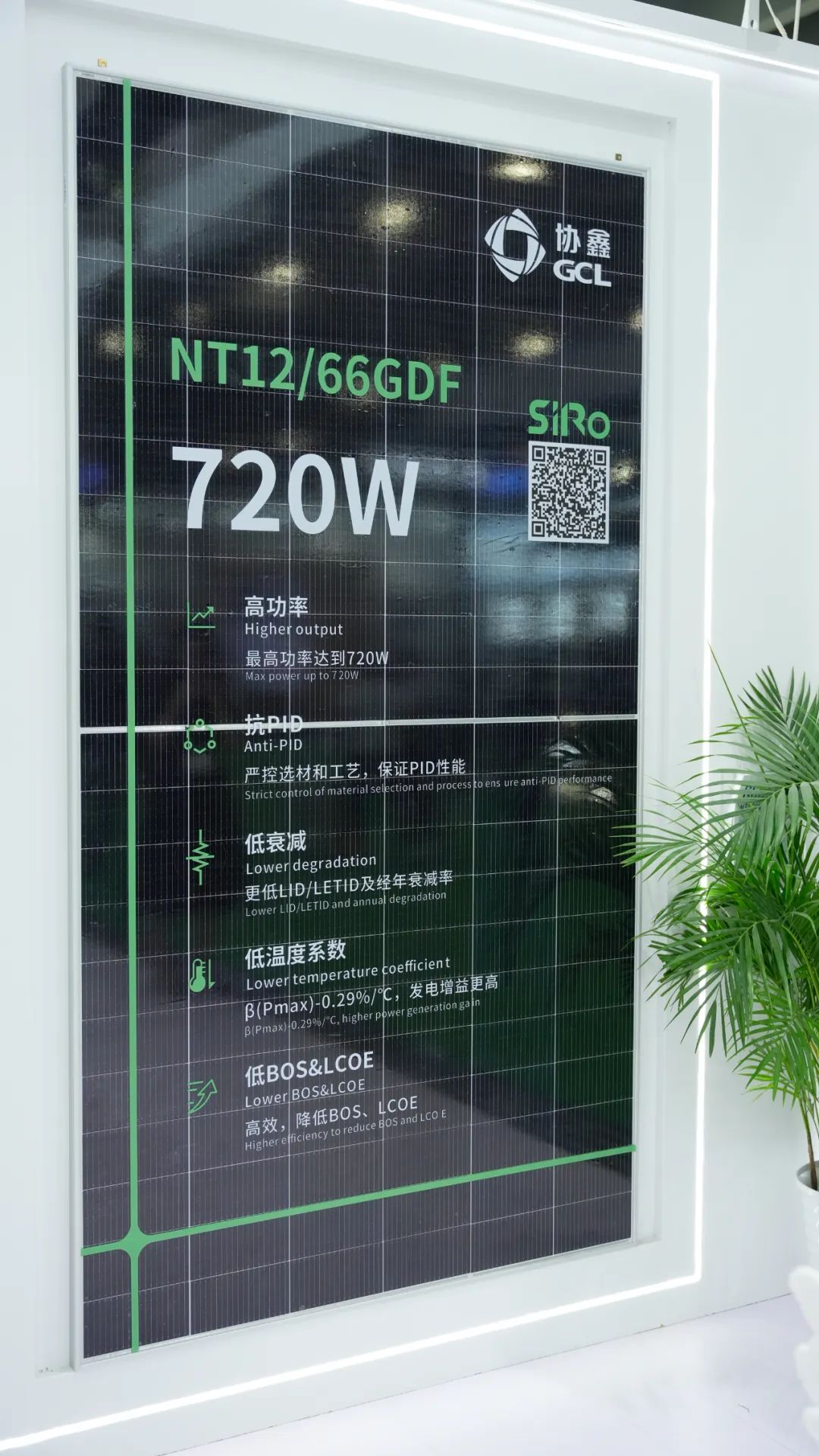 本次展会协鑫集成携多款主流N型TOPCon组件、“莲花”防积灰组件、N型TOPCon电池片以及液冷储能系统、工商业储能系统等旗舰产品组合亮相展会,吸引了大量观众驻足关注。值得一提的是,本次展出的“莲花组件”是协鑫集成0BB量产线结合莲花防积灰组件技术而成,两者的结合将进一步增强其产品竞争力。协鑫集成通过工艺上的技术突破,该款产品增强了光能吸收面积,降低了内阻损耗和IAM损失,使组件功率提高到650W,转换效率提高到23.2%以上。该方案还通过低温焊接,减少了焊接过程中对电池片造成的热应力,有效减少了隐裂的产生,确保组件高可靠性无虞。