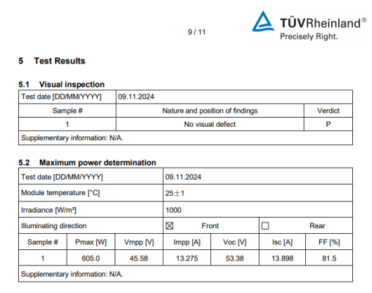 近日,协鑫集成发布消息,其TOPCon高功率组件再获突破,在2278*1134mm标准尺寸下,182-72版型N型TOPCon组件正面功率达到605W,相较于相同版型尺寸在市场上流通的高功率组件相比提升10W,转换效率突破至23.42%,上述产品已成功通过国际权威机构TüV莱茵测试。