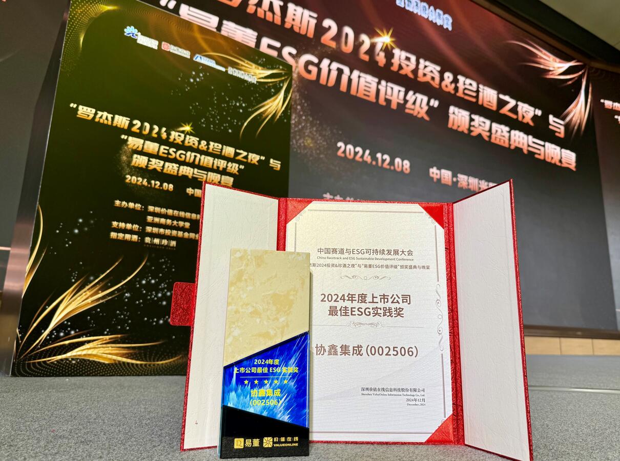 12月8日,由价值在线主办的“中国赛道与ESG可持续发展大会”在深圳举办,在大会期间举行的“易董ESG价值评级”颁奖典礼上,协鑫集成凭借在可持续发展领域的创新实践及优异成绩,荣获2024年度“上市公司最佳ESG实践”奖项。