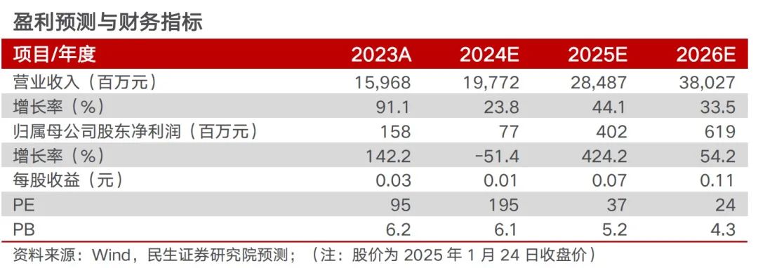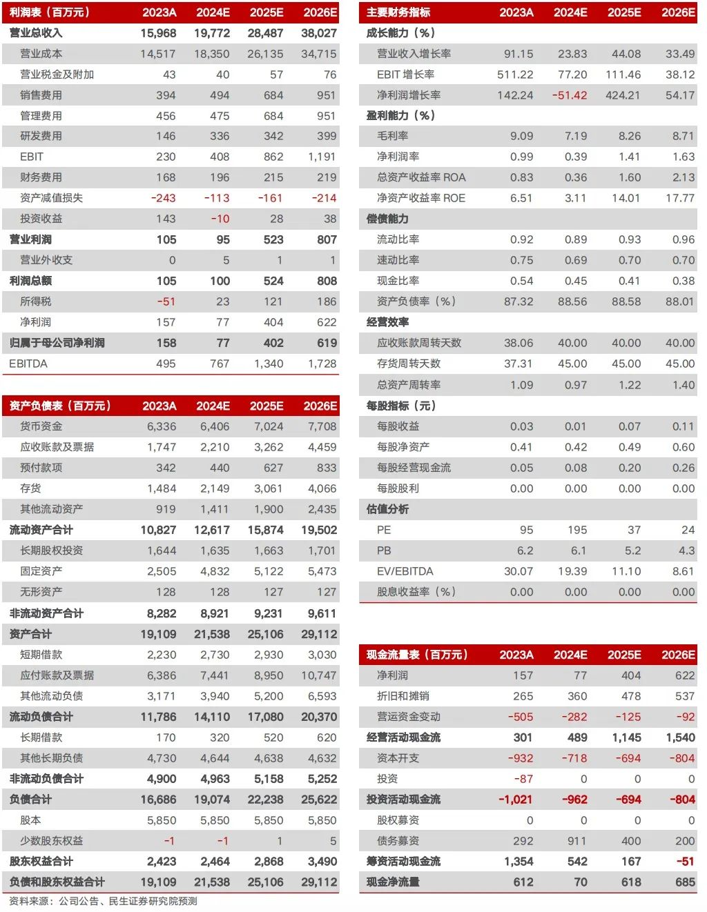我们预计公司24-26年营收分别为197.72/284.87/380.27亿元,归母净利润分别为0.77/4.02/6.19亿元,对应25-26年PE为37x/24x。公司为光伏一体化组件领先企业,行业供需改善后,叠加公司市场持续开拓以及新品推出,盈利有望边际改善,维持“谨慎推荐”评级。