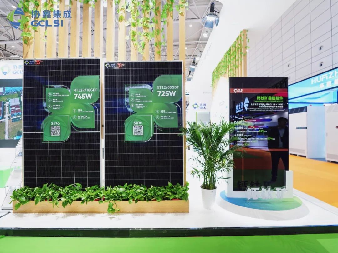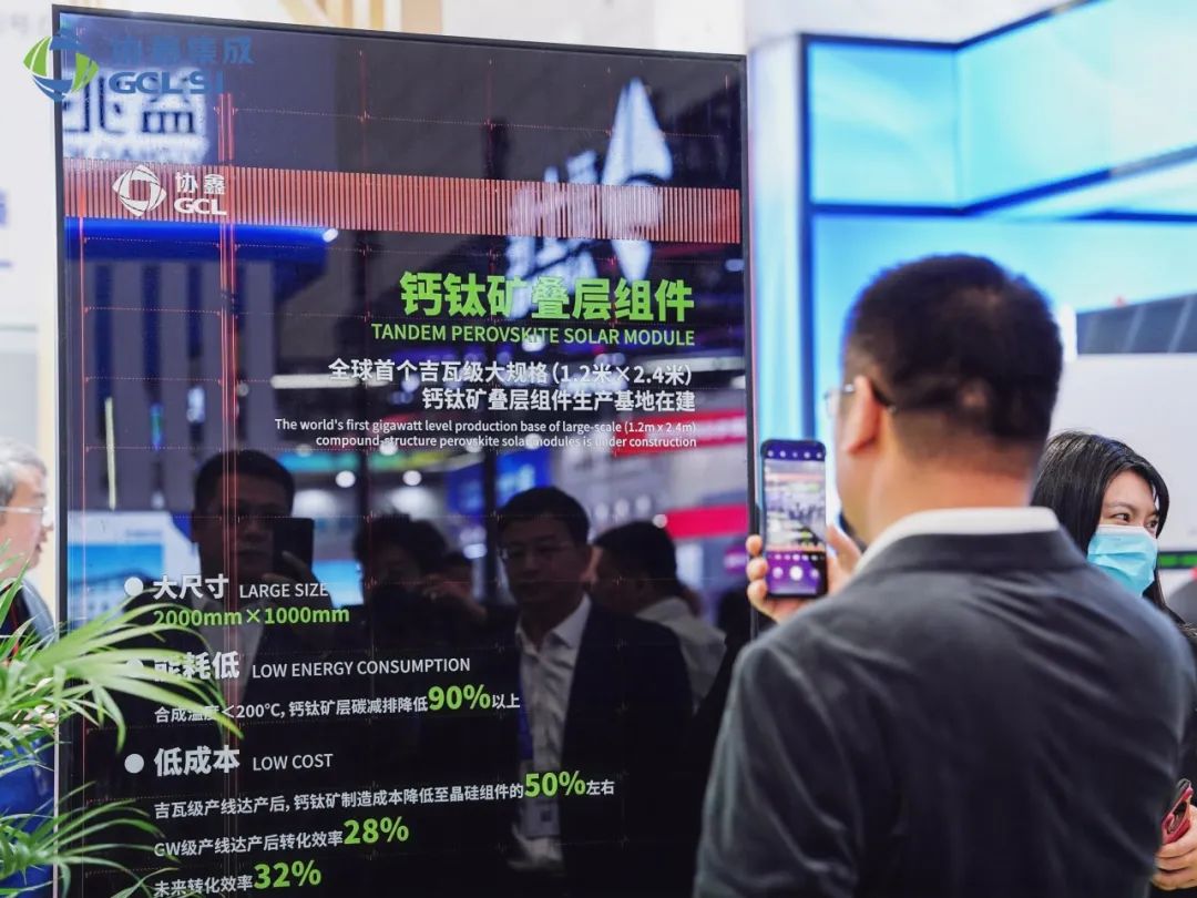 协鑫黑科技-钙钛矿光伏组件以其大尺寸、最高转化效率、最低碳足迹闪亮登场本次展会,深受参观展者追捧。尤其值得一提的是,1.71平方米的钙钛矿晶硅叠层组件稳态效率突破26.36%,在全球商用光伏组件市场中一骑绝尘。