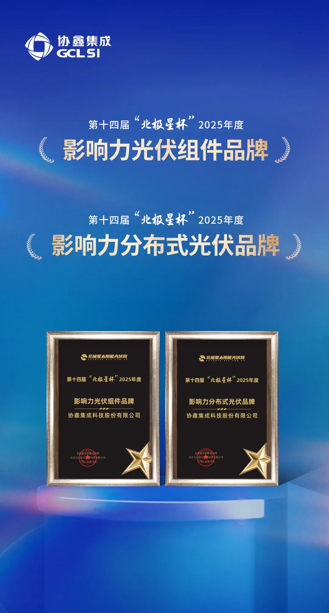 9月9日,第十四届“北极星杯”光伏影响力品牌评选颁奖典礼在南京举办。协鑫集成凭借在光伏组件领域先进的制造理念和创新优势荣获“影响力光伏组件品牌奖”和“影响力分布式光伏品牌奖”,充分彰显协鑫集成在光伏领域的制造实力和品牌影响力。