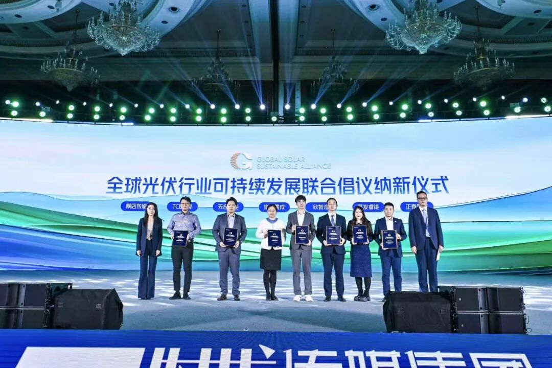 与此同时,在大会特别环节,由协鑫、通威、隆基、晶科、晶澳等24家全球头部太阳能企业联合发起的 全球太阳能 可持续发展联盟(GSSA)为各成员组织举行了纳新仪式。该联盟聚焦太阳能行业全产业链,以三大核心支柱为框架,围绕矿产责任采购、生态保护、社会公平等领域制定九项行动要点。旨在凝聚上下游核心力量,协同解决社会与环境问题,加速全球可再生能源转型进程。