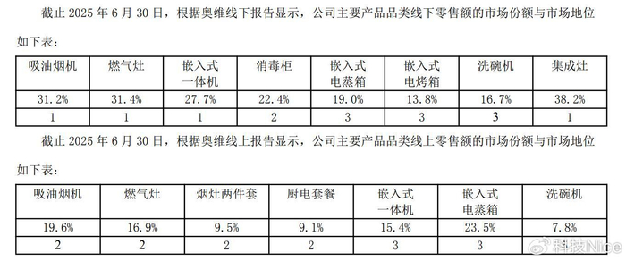 这意味着,方太的体量已经是老板电器的1.5倍以上。从数据维度看,两者的营收倍数关系从2019年的1.4倍,扩大到了2025年的1.518倍。虽然双方在核心品类——吸油烟机和燃气灶的线上市场份额上依然咬得很死(奥维云网数据显示,2025年初两者线上销额市占率仅差0.01%),但总体营收的巨大鸿沟揭示了更深层的问题:在传统烟灶之外,方太或许在综合客单价、线下工程渠道以及新兴品类的拓展上,构建了比老板电器更宽的护城河。
