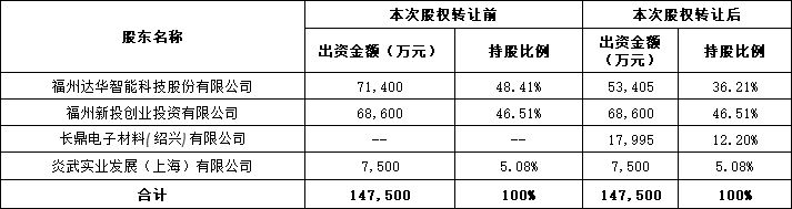 据 达华智能 公告,此次转让的受让方为长鼎电子材料(绍兴)有限公司(以下简称“长鼎电子”)。