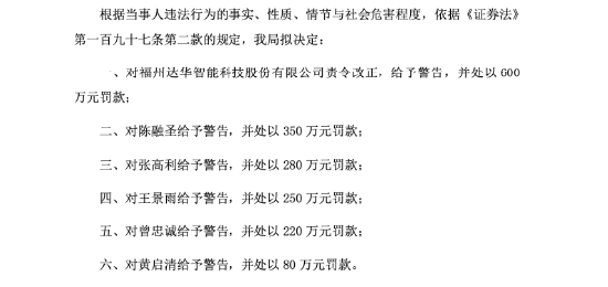 2月27日,福州达华智能科技股份有限公司(简称:ST达华/达华智能)(002512.SZ)披露,公司收到福建证监局出具的《行政处罚事先告知书》。