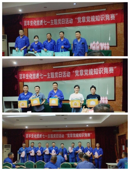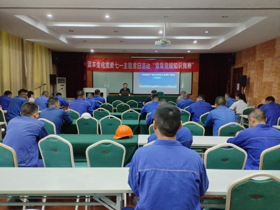 2025年6月30日上午,蓝丰生化党委在公司会议室举行了“党章党规知识竞赛”活动。活动由公司党委副书记、工会主席、办公室主任王东主持,七个党支部的35名党员代表参加了本次活动。