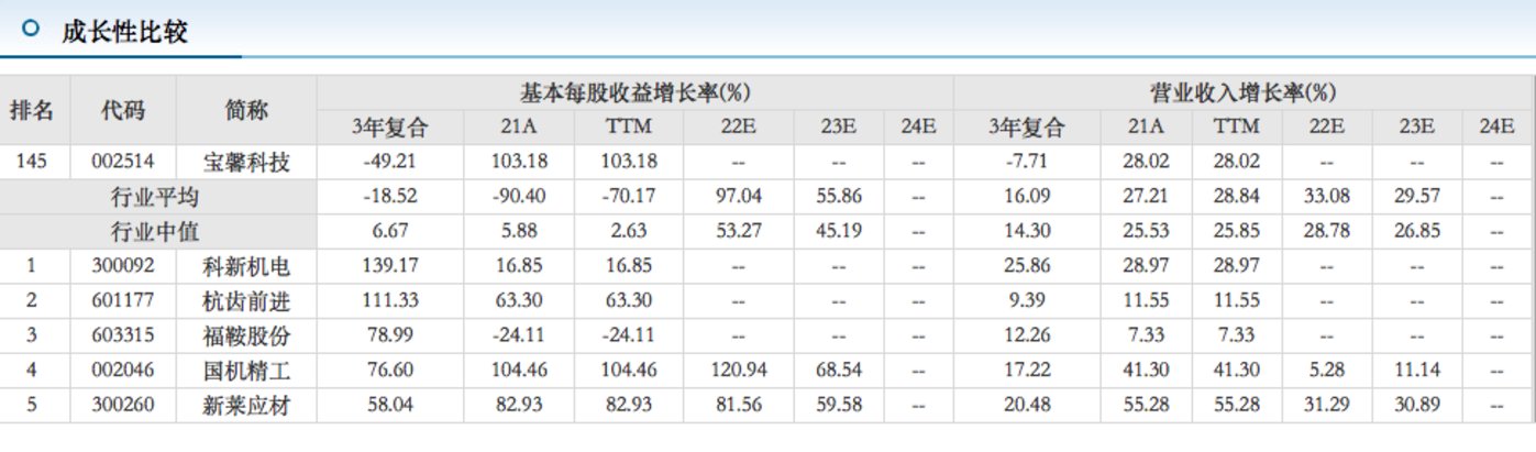从行业来看,国内金属制造业竞争充分。企业规模上,与以中集集团、中国动力等为代表的行业龙头企业相比,无论是总市值,还是营业收入、净利润都相差较大。成长性方面,宝馨科技的表现也不够突出,基本每股收益、营收、净利润这三项指标的近三年复合增长率低于行业平均水平。