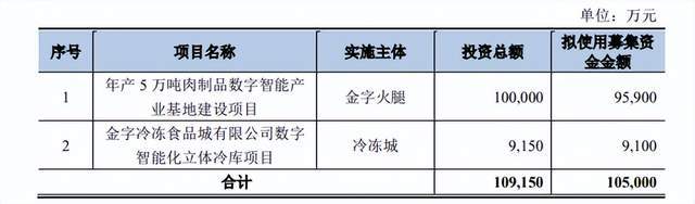 定增募投项目为年产5万吨肉制品数字智能产业基地建设项目、金字冷冻食品城有限公司数字智能化立体冷库项目。不难看出,金字火腿通过定增加码主业。