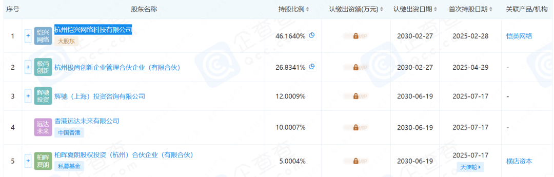 (图1为杭州极逸股权结构,图2为恺英网络科技股权结构,来源:企查查)