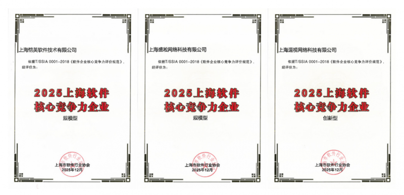 在本次评选中,恺英网络旗下多家子公司收获多项荣誉:上海恺英软件技术有限公司同时获评“2025长三角百家品牌软件企业”“2025上海软件核心竞争力企业(规模型)”;上海盛凇网络科技有限公司获评“2025上海软件核心竞争力企业(规模型)”;上海逗视网络科技有限公司获评“2025上海软件核心竞争力企业(创新型)”。