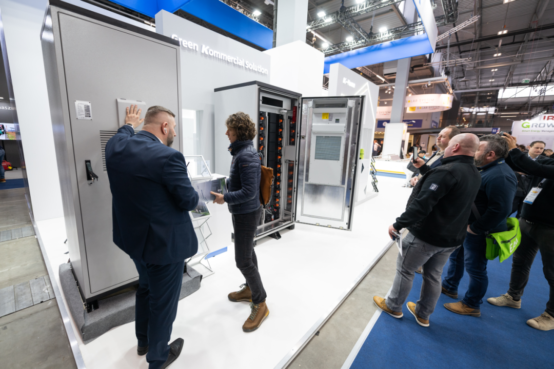 全场景、多元化的产品,使得科士达在波兰市场迅速扩大影响力。在Green Kommercial Solution展区,科士达重点展示了针对工商业储能应用场景的50kW/100kWh工商业储能系统。该产品搭载全栈自研的3S系统,结合长寿命宁德时代磷酸铁锂电芯和高效风冷温控系统,并采用模块+机柜级消防设计,提供全方位安全防护,确保系统稳定运行。一体化设计不仅节省了占地面积、降低了建设成本,还缩短了安装和调试时间,此外,运行自发自用、分时电价、削峰填谷等策略,同时搭配STS静态切换开关柜,可实现并离网无缝切换,解决工商业场景断电等痛点问题。