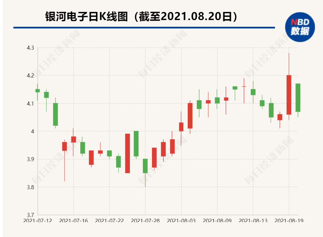 今日(8月20日)上午,《每日经济新闻》记者拨打银河电子公开电话,但始终未获回应。截至今日午间收盘,银河电子报4.07元/股,跌幅为3.10%。