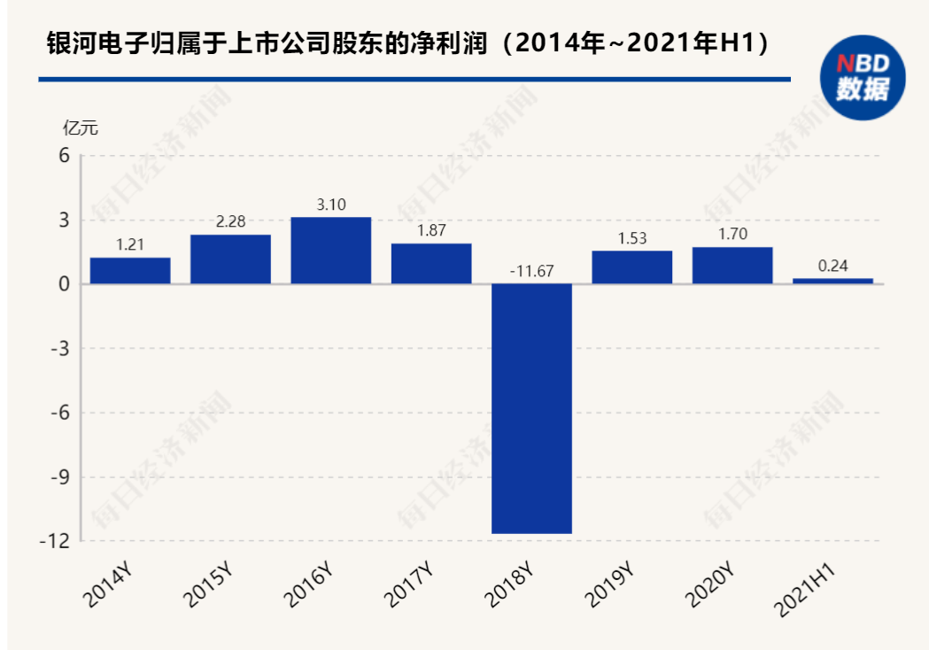根据2021年半年报,当期银河电子营业收入为8.17亿元,同比增长32.25%,归属于上市公司股东的净利润为2407.82万元,同比下降76.93%,基本每股收益为0.0214元/股,同比下降76.91%。