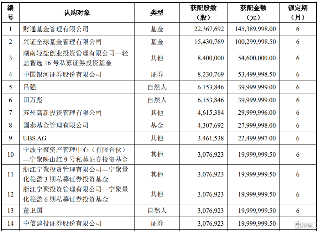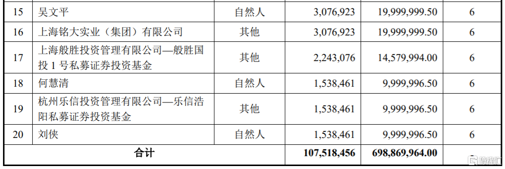 格隆汇9月1日丨日发精机(002520.SZ)公布非公开发行股票发行情况报告书,此次发行最终价格确定为6.5元/股,最终认购规模为1.08亿股,募集资金总额6.99亿元。股票上市时间为2021年9月7日(上市首日)。此次发行对象最终确定为20家。具体配售结果如下: