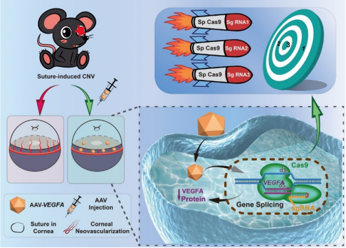 角膜新生血管是致盲的主要原因之一,全球发病率可达4.1%-10.4%,其中12%-57.4%的患者会因此失明。近日,复旦大学附属眼耳鼻喉科医院-光正眼科“眼健康创新技术联合实验室”,利用前沿的基因编辑技术,筛选开发了一种针对VEGFA基因的CRISPR/Cas9的基因编辑系统,达到从源头上抑制角膜新生血管(简称CoNV)表达的效果,为角膜新生血管这种致盲性眼部病变的治疗带来新突破。