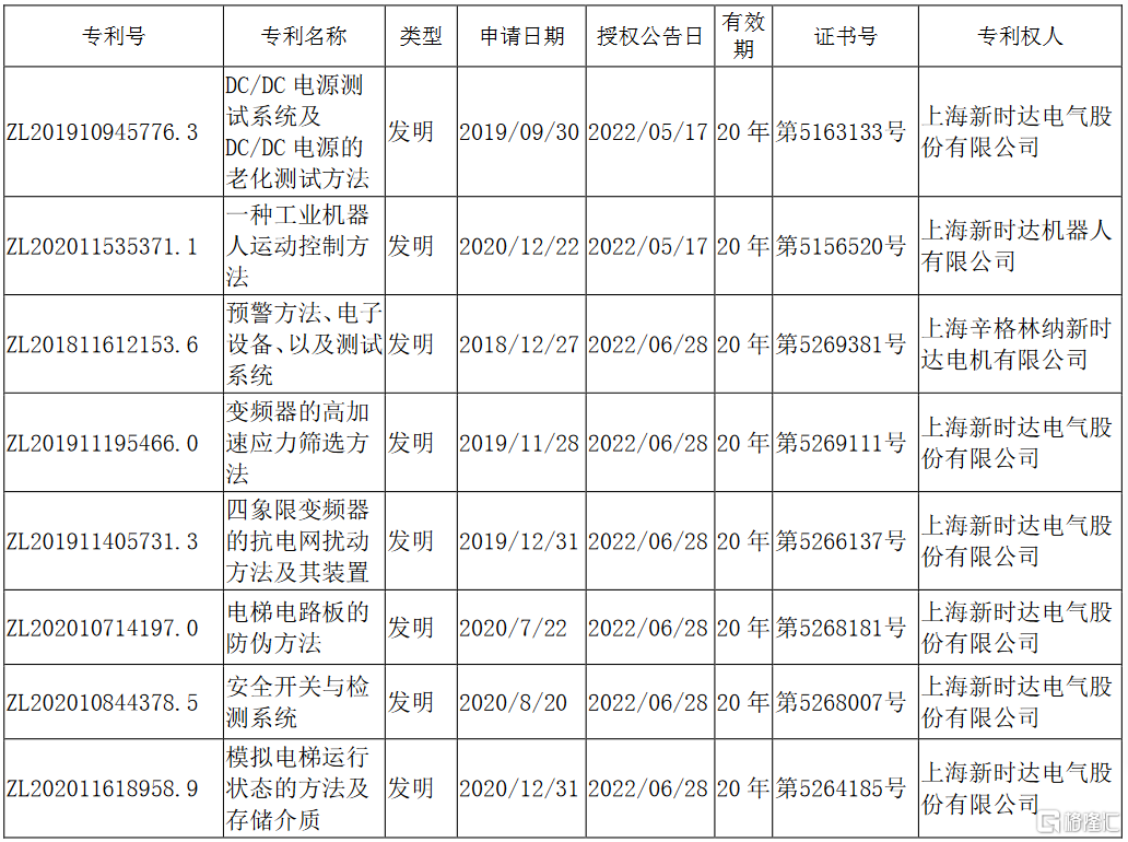 新时达(002527.SZ)公布,公司及子公司于近期收到国家知识产权局颁发的发明专利证书,具体情况如下: