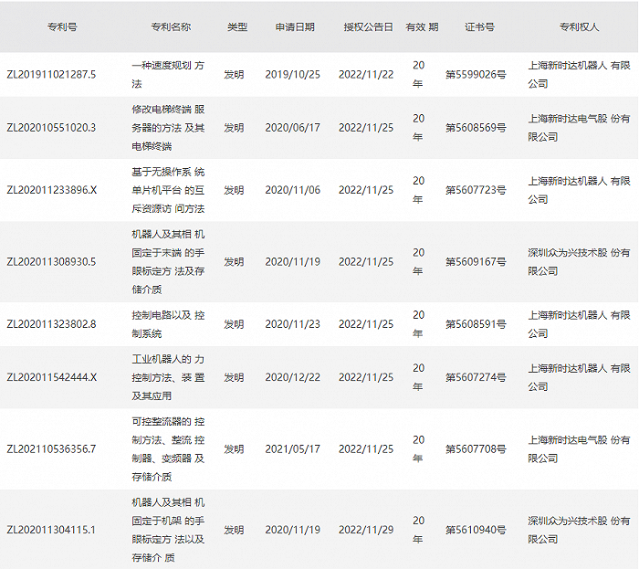 新时达12月5日公告,公司及子公司于近期收到国家知识产权局颁发的8项发明专利证书。