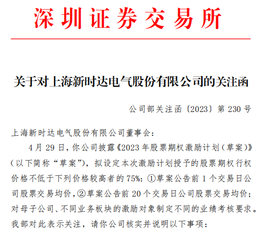 新时达日前因2023年股票期权激励计划(下称“激励计划”)收到来自深交所的关注函。