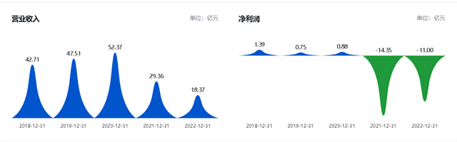 巨潮资讯数据显示,2020年-2022年,英飞拓实现营业收入分别为52.37亿元、29.36亿元、18.37亿元,同期净利润为0.88亿元、-14.35亿元、-11亿元。