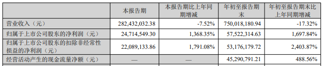 2025年前三季度,金财互联归属于上市公司股东的净利润为0.57亿元,同比增长1,697.84%。